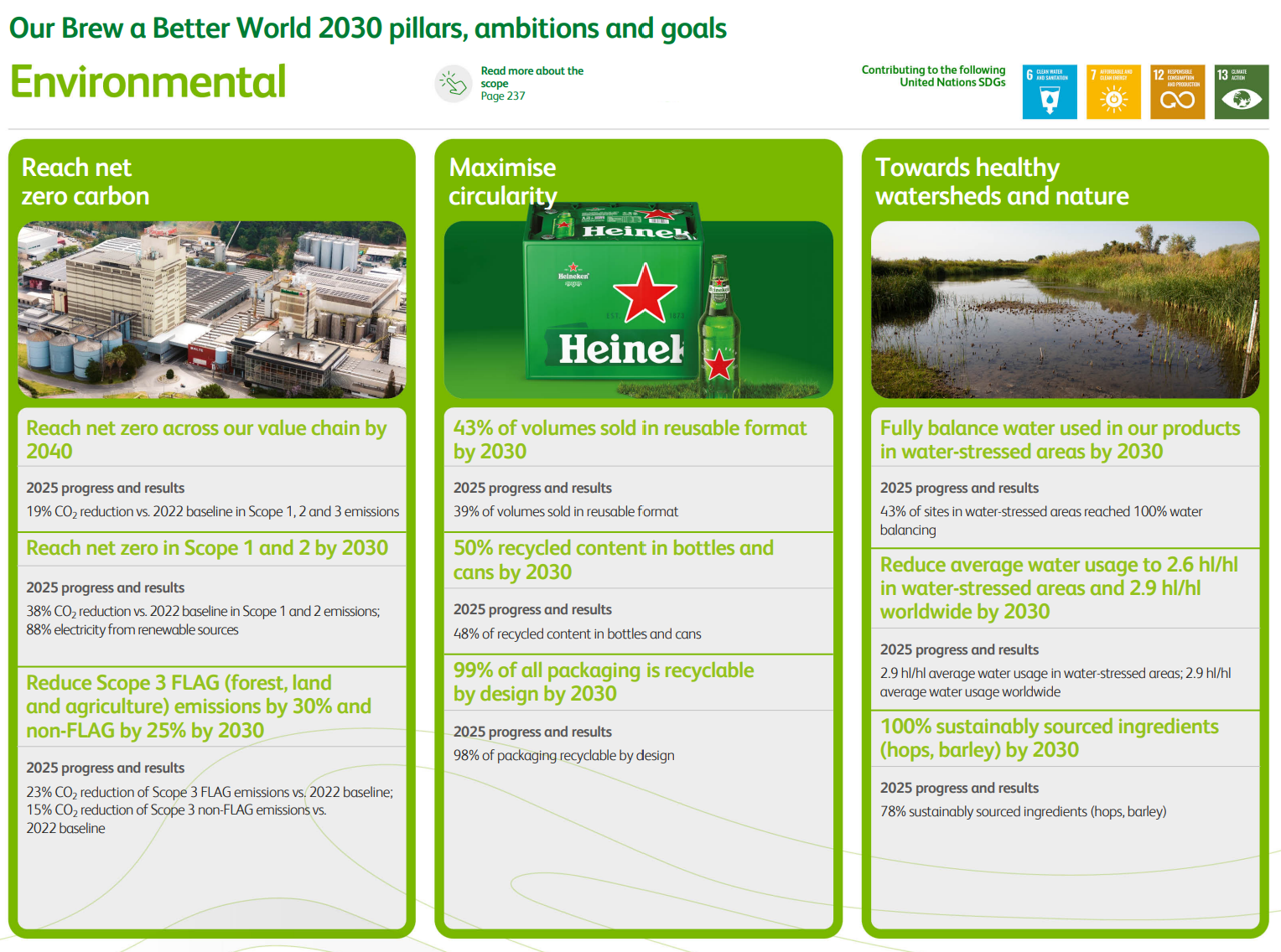 Social Data: Perhaps more my opinion on the reading of the rhetoric, but FY24 reads more like “targets met”; FY25 reads more like “tracked performance” that needs to be measured / managed. FY24 explicitly frames hitting the 30% women in senior management goal early and reiterates the 40% by 2030 ambition; it also quantifies progress on zero-alcohol options reaching 91% of beer & cider volumes in it’s product lineup.